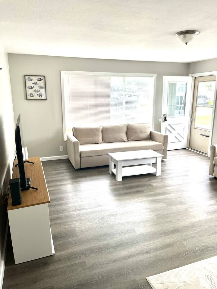 Sleeps 4; 1 queen bed, 2 twin beds (bunk bed) •One full bathroom with shower, bath towels, and toiletries •Kitchen, fully stocked, coffee bar •Board games •Dog friendly •All linens provided •4-mile drive to River Raisin National Battlefield Park •3-mile drive to Sterling State Park ☆☆BEDROOMS☆☆ Bedroom 1: Unwind in this calm and inviting retreat featuring a luxurious queen bed that promises restful nights. Bedroom 2: Designed for fun and flexibility, this room features two cozy twin beds—perfect for kids, friends, or anyone ready for sleepovers and late-night chats. Each room offers a unique charm, making it easy for everyone to relax, recharge, and make unforgettable memories! ☆☆BATHROOM☆☆ The bathroom is located off of the dining room area. And don't worry, we've got you covered for everything you need! Our bathroom comes lavishly stocked with towels, shampoo, conditioner, and all your essential bathroom items - providing peace of mind in case you've forgot something. ☆☆KITCHEN☆☆ Once you've settled in, head to the fully equipped kitchen, stocked with all the essentials—gadgets, utensils, and cookware—to make meal prep a breeze. Start your day right at our fully stocked coffee bar, where you can brew the perfect cup and enjoy a refreshing morning boost! ☆☆OUTSIDE SPACE☆☆ Unwind in the serene backyard as you grill your favorite meals on the gas BBQ, surrounded by nature's tranquility. ☆Whether you’re here to explore the great outdoors or simply relax with loved ones, our home offers the perfect blend of comfort and functionality. Book your stay today and create unforgettable memories! ☆