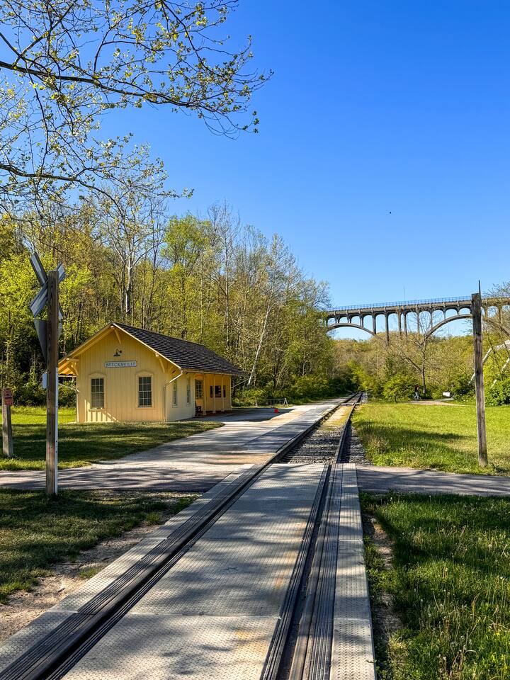 🛌 SLEEPING ARRANGEMENTS Bedroom 1 – Queen bed + dedicated desk (perfect for remote work or trip planning) Bedroom 2 – Two twin beds (ideal for kids or friends) Bedroom 3 – Queen bed with nature-inspired wallpaper and tranquil vibes Portable crib included 🚿 BATHROOM Full bathroom with shower Fresh towels + complimentary toiletries Baby bathtub for little travelers 🍳 KITCHEN & DINING Cook like home in a fully stocked kitchen with seating for 6 + a highchair. ⭐ Guest favorite: Coffee & waffle bar featuring a Breville coffee maker, Chemex pour-over, and fresh beans. 🎲 FAMILY & PET-FRIENDLY EXTRAS Board games + kids’ toys & books Yoga mats + resistance bands Dog-friendly space with outdoor room to roam 🌙 OUTDOOR OASIS Private hot tub under the stars Fire pit with firewood included Gas BBQ grill + outdoor dining under bistro lights 🧺 CONVENIENCE Washer & dryer in the basement Linens professionally laundered offsite (Tide Cleaners) 4-mile drive to Boston Mills/Brandywine Ski Resort 12 miles to Blossom Music Center 💡 WHY GUESTS LOVE IT HERE: Close to the park, packed with thoughtful amenities, and a true balance of adventure + relaxation. Whether you’re planning hikes, ski runs, or lazy mornings with coffee and waffles, this home makes it easy. ✨ Book your stay today and start making memories in the Cuyahoga Valley!